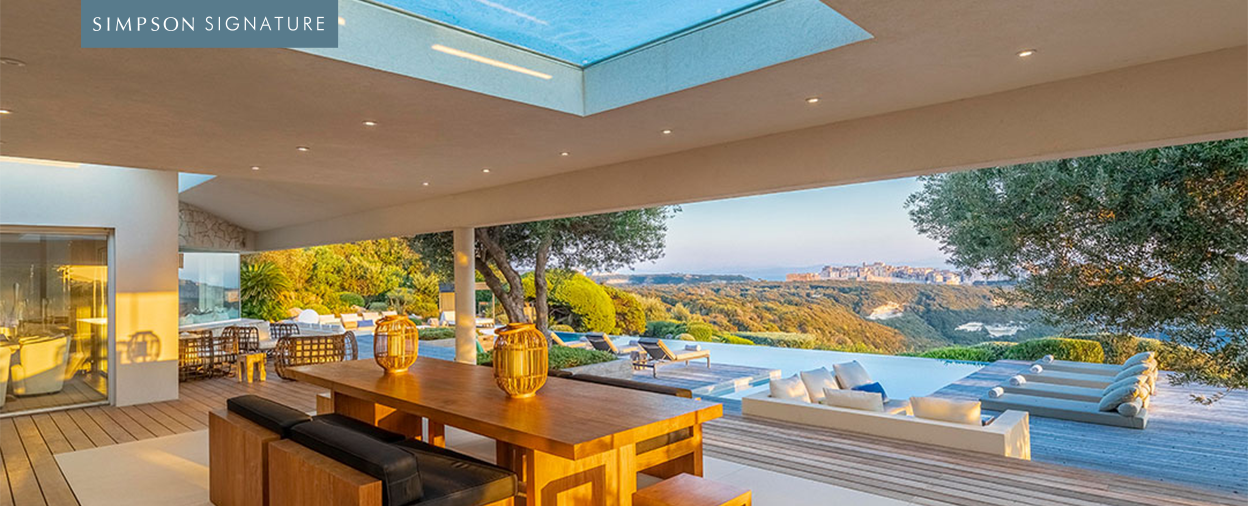 Bonifacio citadelle is the signature landmark of southern Corsica, perched defiantly atop precipitous white cliffs and guarding one of the most exclusive yacht spots in the Mediterranean. It’s a view that’s best appreciated from a distance, such as the pool terrace at the magnificent Cala di Greco, a stunning Simpson Signature villa that overlooks the town and its myriad small cafés, bars and waterside restaurants.