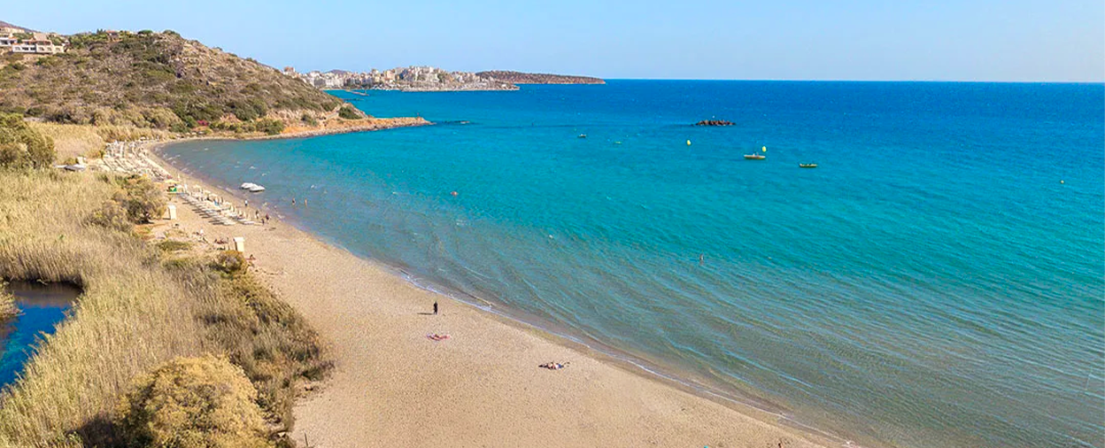 There’s plenty to do here but absolutely no pressure to do any of it. Accessed via steps and a small pedestrian bridge across the gin-clear waters of a shallow river, the glorious sandy beach is a real draw with ample space to stretch out with a book and indulge in a little sun worshipping and there are water sports to entertain the young and young-at-heart. The cosmopolitan heart of Agios Nikolaos is a very affordable five-minute taxi ride away, offering an excellent array of boutique shops, cafés, bars and tavernas, with plenty to entertain all generations both by day or night.