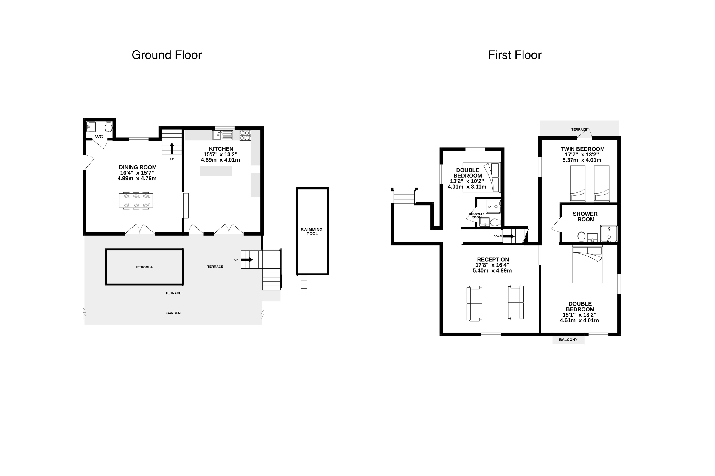 - Swimming pool 7.5m x 3m, access via Roman steps
