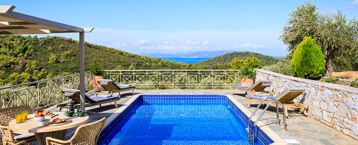 A villa or hotel holiday in Skopelos – wonderfully green, unspoilt and peaceful – is about enjoying a world which moves at holiday pace. Its wonderful beaches range from secluded coves to more organized spots like Panormos, Milia and Kastani, well equipped with sunbeds, watersports and beach bars for idyllic days by the sea. Our villas on Skopelos are some of the very best available on the island, a mix of brand new villas and stylish renovations, family properties and smaller romantic retreats, almost all with their own private swimming pool. Location is key, so our properties are either walking distance to Skopelos Town or blessed with fantastic views, or in many cases, both!