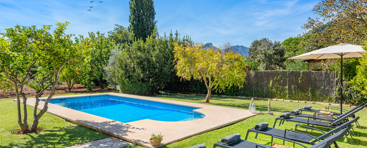 Charming by name and charming by nature, Villa Encant sits very prettily surrounded by orchards, with the foothills of the Tramuntana mountains rising up behind. Kids love the grassy gardens and the thrill of picking oranges fresh off the tree in season, while the grown ups can supervise it all beneath the shade of a huge old walnut tree. This is a house that’s designed for hassle-free holiday living, with a single-storey layout that’s ideal for little or elderly legs and Roman steps for easy pool access. If you decide to eat in rather than exploring nearby Pollensa town, there’s a handy little barbecue area for laid-back family meals, and when the kids are ready for bed, this is an idyllic spot to sit and enjoy a well-earned night-cap beneath the stars.